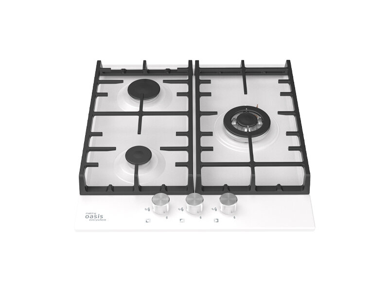Варочная панель газовая making Oasis everywhere P-3MWT (B) белая металл решетка чугун 3 комфорки