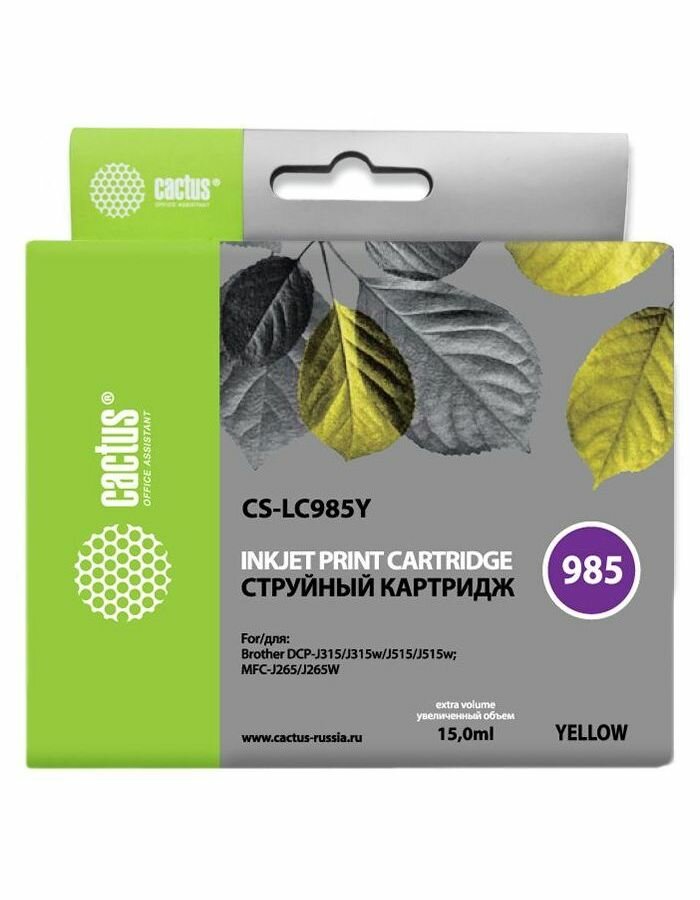 Картридж струйный CACTUS CS-LC985Y желтый для Brother DCPJ315W/DCPJ515W/MFCJ265W (15мл)