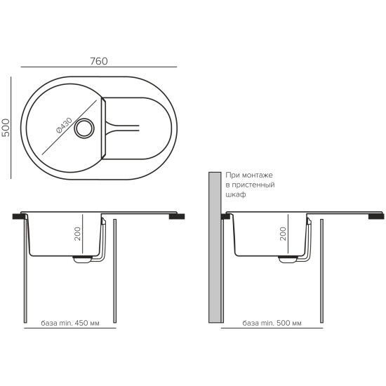 Мойка для кухни каменная POLYGRAN ATOL-760, черная, врезная, круглая, с крылом (№16 Черный)