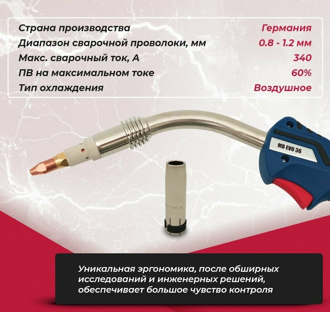 Сварочная горелка Abicor Binzel MB EVO 36 3м, 340А интересное: