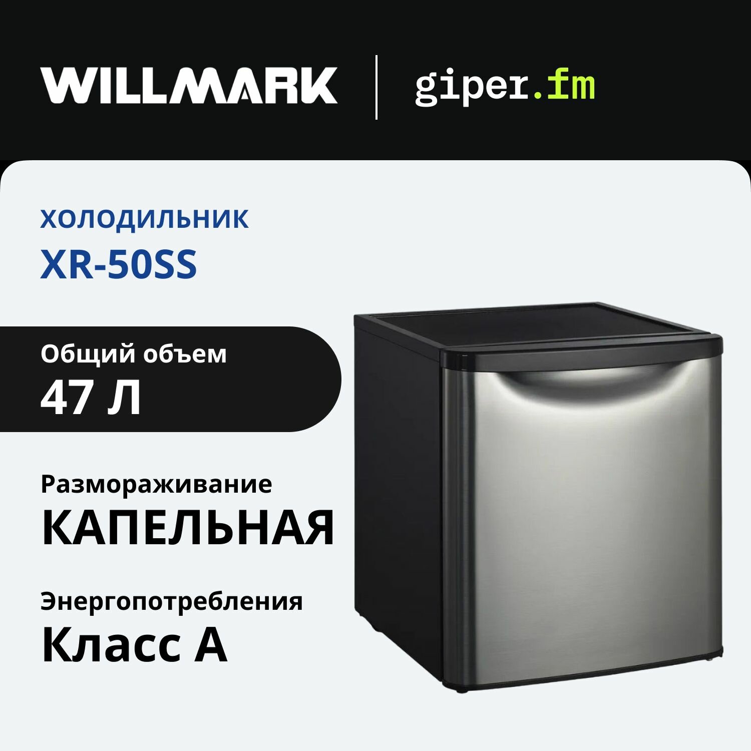 Купить Холодильник WILLMARK XR-50SS (50л, хладагент R600/a , 55,5Вт, мороз. отделение, серебряный цвет)