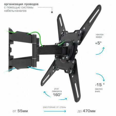 Купить Kromax Крепеж Kromax ATLANTIS-45 white, Кр. стал. наст. для TV 22"-65", max 45 кг, 5 ст св., нак. +5°-15°, пов. 160°, от ст. 55-470 мм, max VESA 400x400 мм