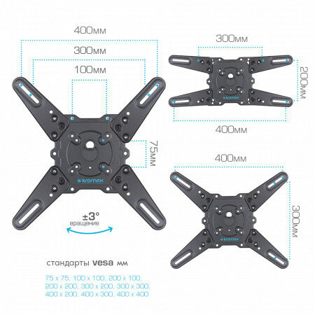 СохранитьKromax Крепеж Kromax ATLANTIS-45 white, Кр. стал. наст. для TV 22"-65", max 45 кг, 5 ст св., нак. +5°-15°, пов. 160°, от ст. 55-470 мм, max VESA 400x400 мм интересное: