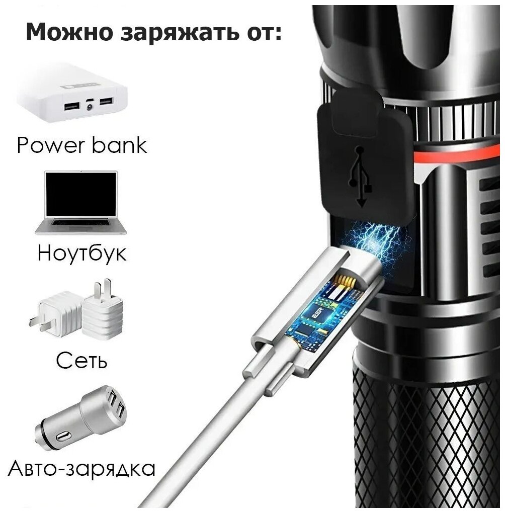 Ручной светодиодный аккумуляторный фонарь со стеклобоем и резаком/для охоты и рыбалки/5 режимов свечения/YC-01810-P50 интересное: