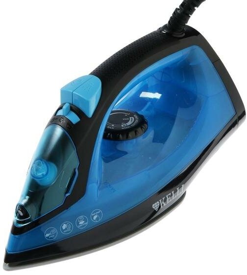 Утюг KELLI KL-1642, 2200 Вт, керамическая подошва, 200 мл, паровой удар, сине-чёрный 7086074