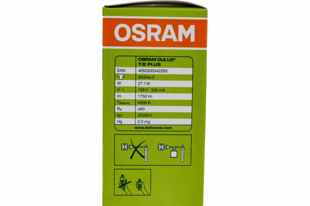 Ниже Вы можете прочитать отзывы на Лампа люминесцентная OSRAM DULUX T/E 26 W/840 PLUS, ознакомится с подробными характеристиками, посмотреть интересные обзоры и фотографии на Лампа люминесцентная OSRAM DULUX T/E 26 W/840 PLUS.