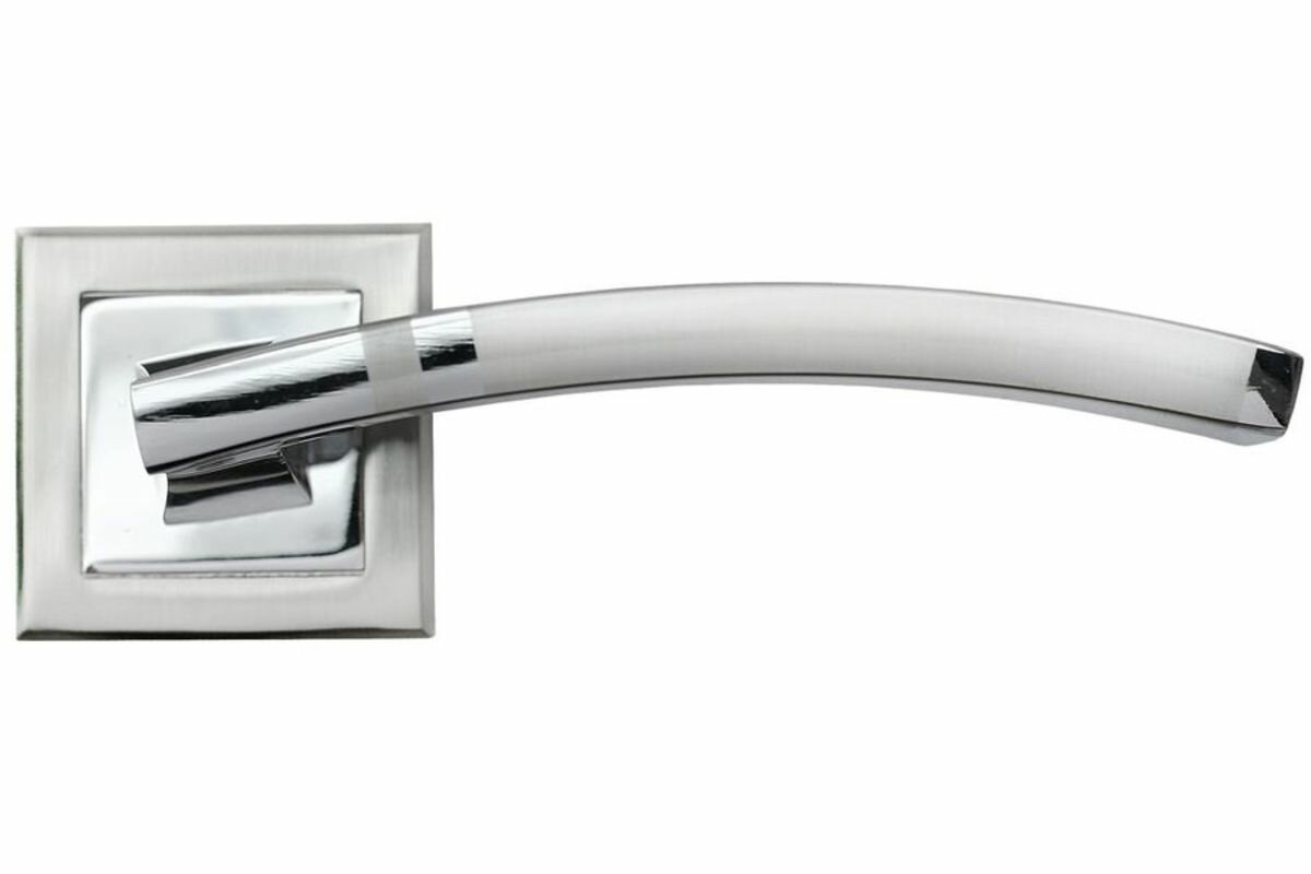 Дверная ручка на квадратной розетке RUCETTI RAP 12-S SN/CP белый никель/полированный хром