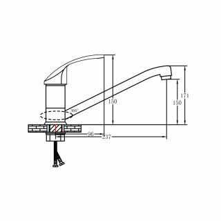 Смеситель для кухни, РМС SL85-004FBS-25, поворотный излив, однорычажный