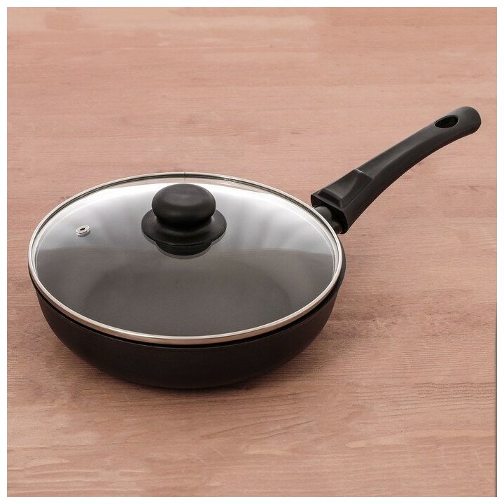 Купить Сковорода 22 см, съёмная ручка, с крышкой Доляна .