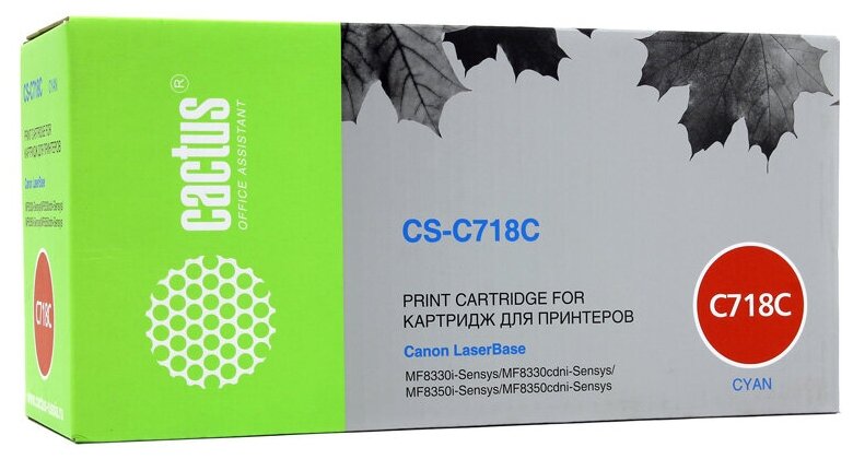 Картридж лазерный Cactus CS-C718С CS-C718C 718 C голубой (2900стр.) для Canon i-Sensys MF8330/MF8340/MF8350/MF8360/MF8540/MF8580/LBP7200/7210/7660/768