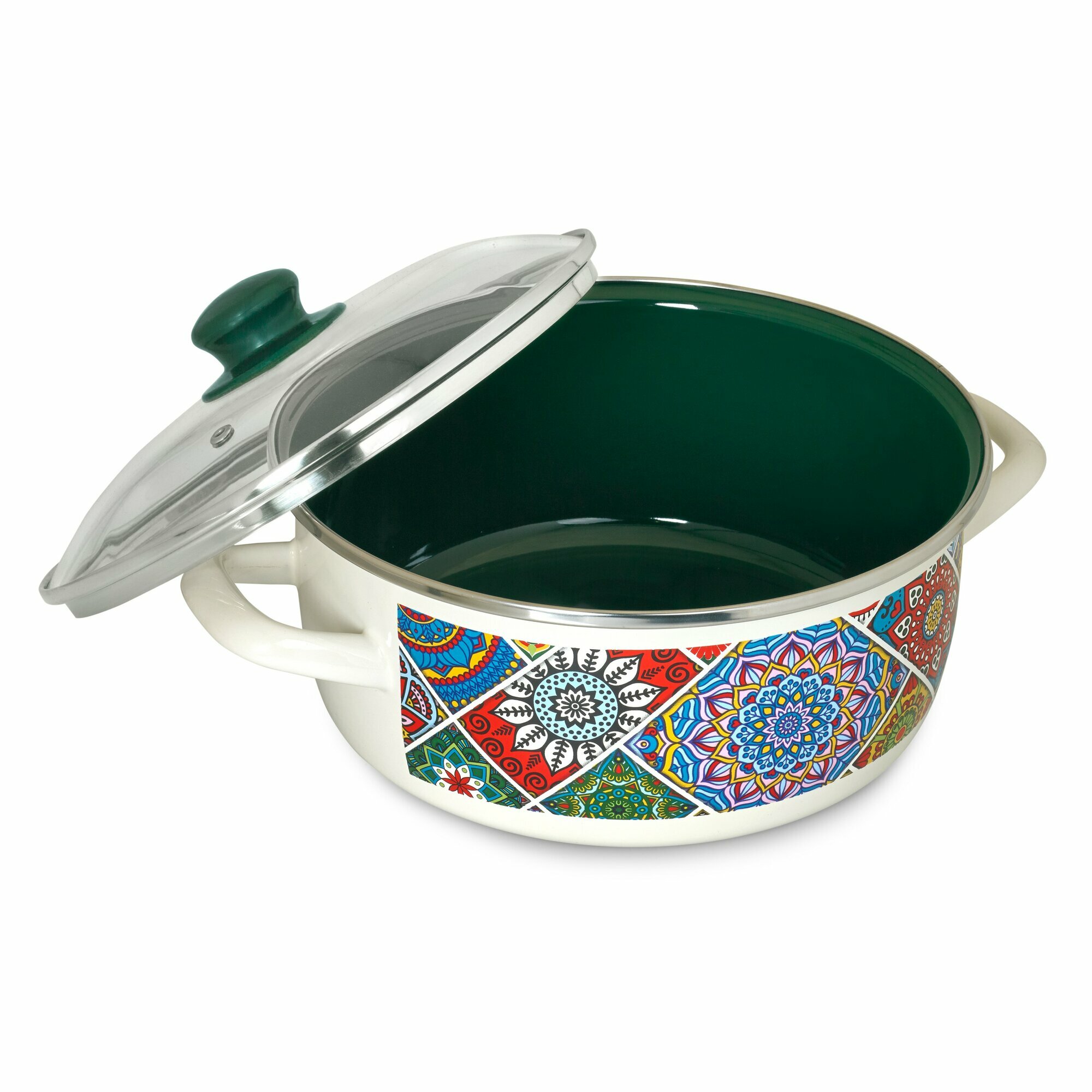 Кастрюля глубокая эмалированная со стеклянной крышкой, 4,75 л, Султана