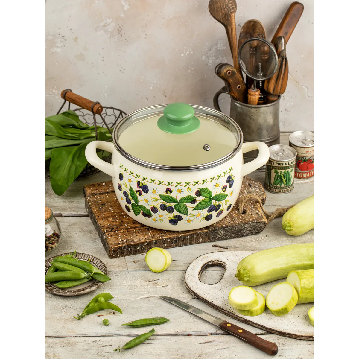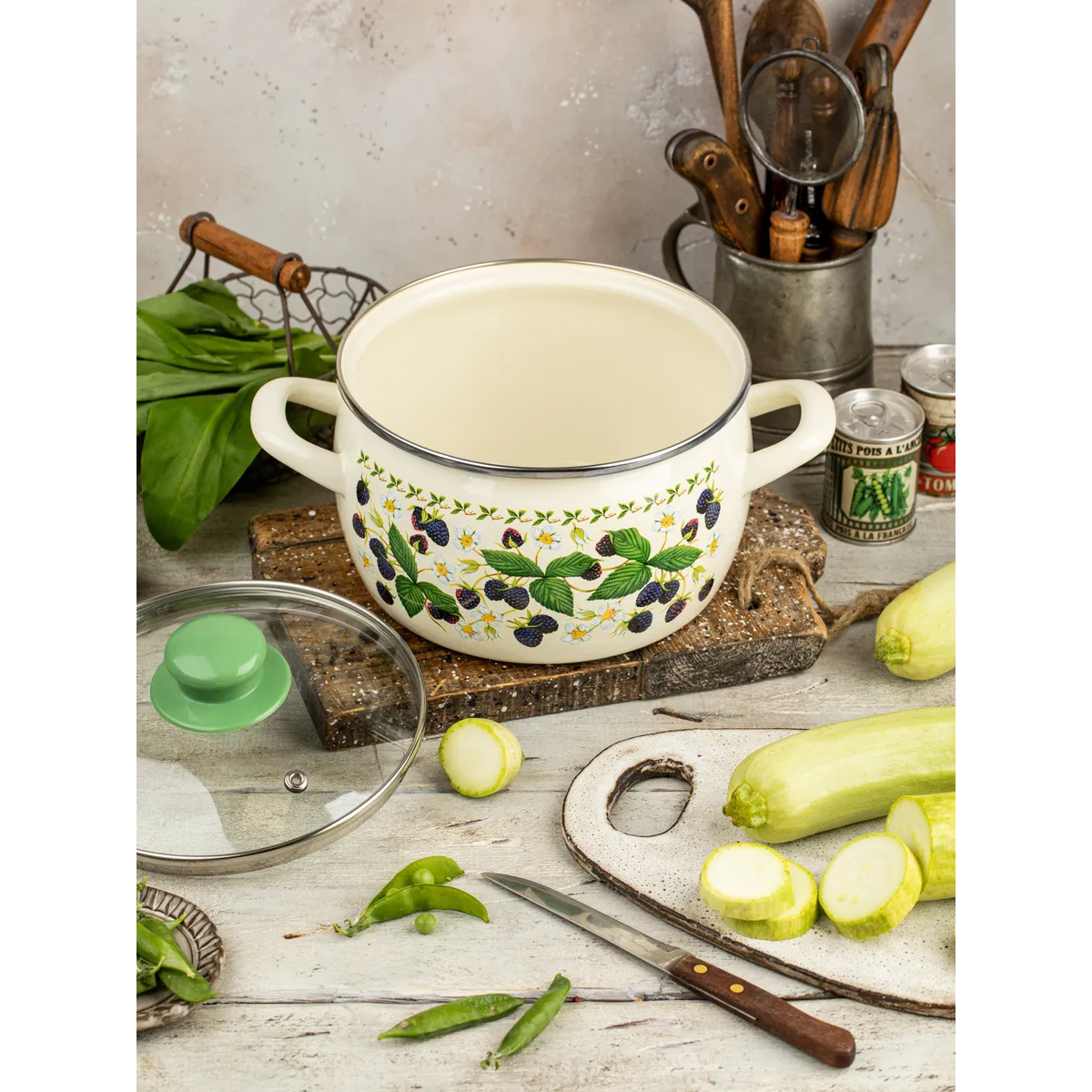 Кастрюля эмалированная Metrot Ежевика, с крышкой, 5,7 л