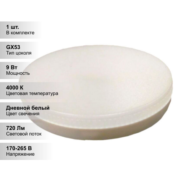Купить ЭРА LED GX-9W-860-GX53 (диод, таблетка, 9Вт, хол, GX53) (10/100/4200)