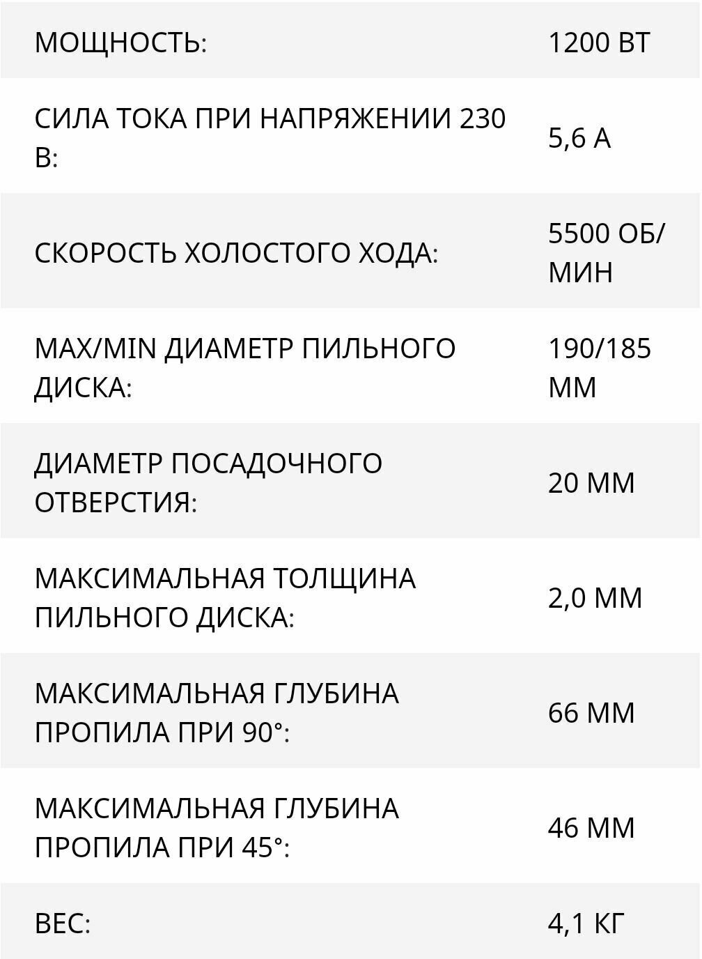 | Комплект поставки | Дисковая пила; Направляющая шина; Ключ; Инструкция; Коробка. |