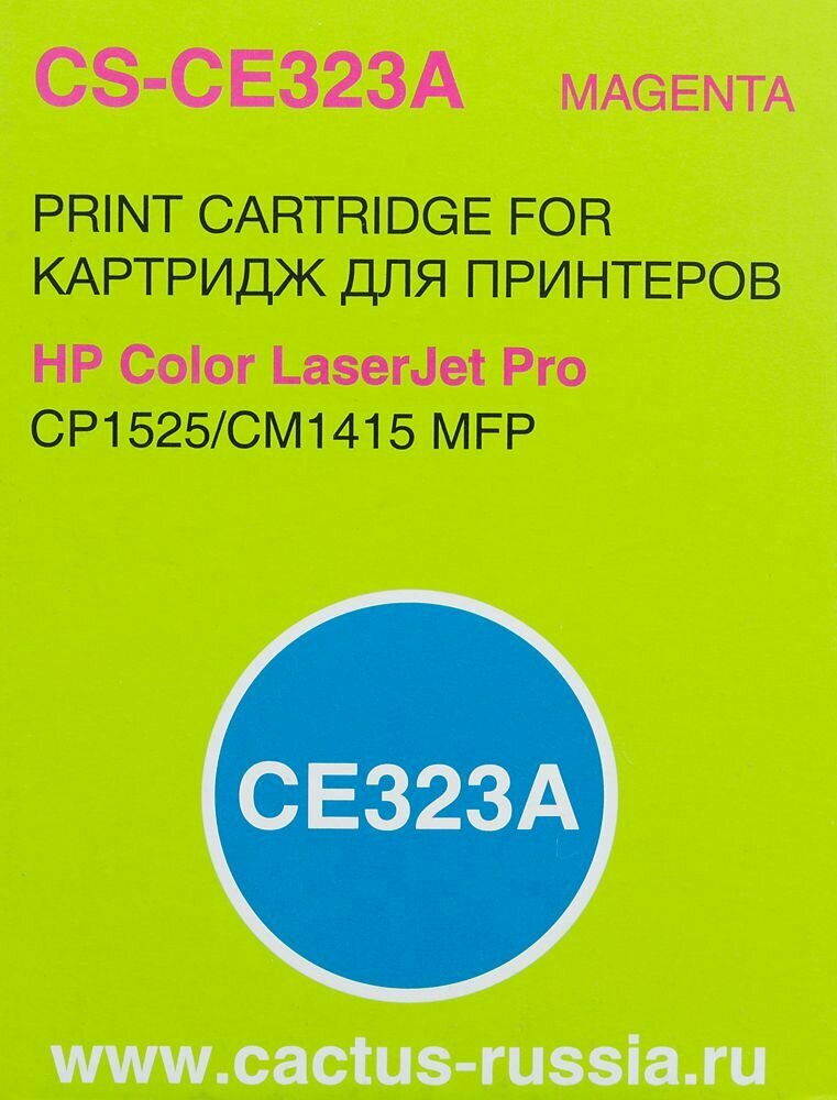 Картридж лазерный CACTUS (CS-CE323A) для HP LaserJet M1415FN/FNW/CP1525N, пурпурный, ресурс 1300 стр.
