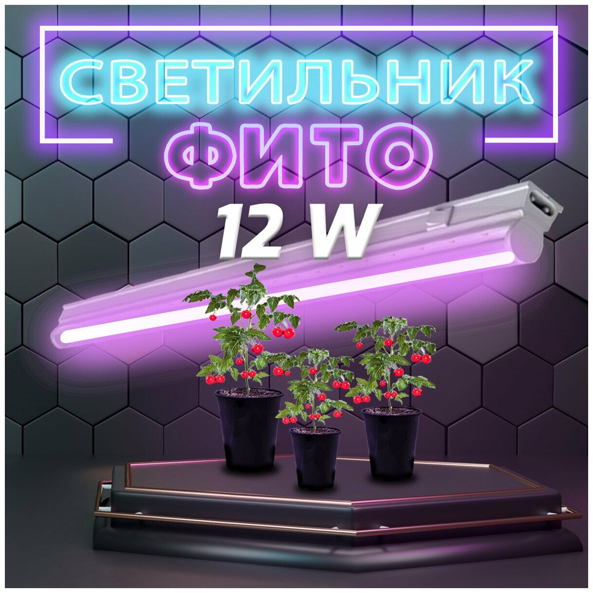 Светильник накладной ДПО 12 Вт 350 Лм фиолет спектр для растений IP20 LED 865х25х37 мм175-265 В Fito 130411912 GAUSS