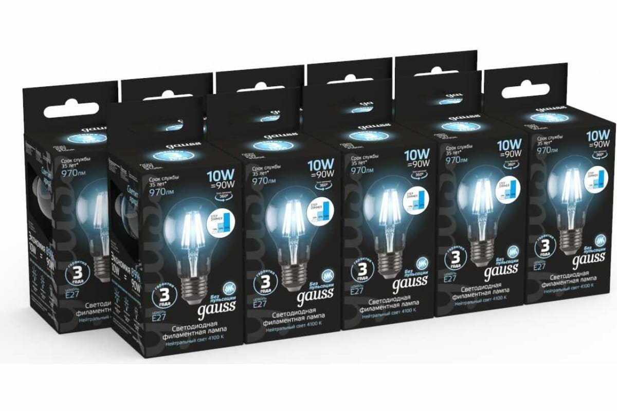 Gauss Лампа Filament А60 10W 970lm 4100К Е27 шаг. диммирование LED
