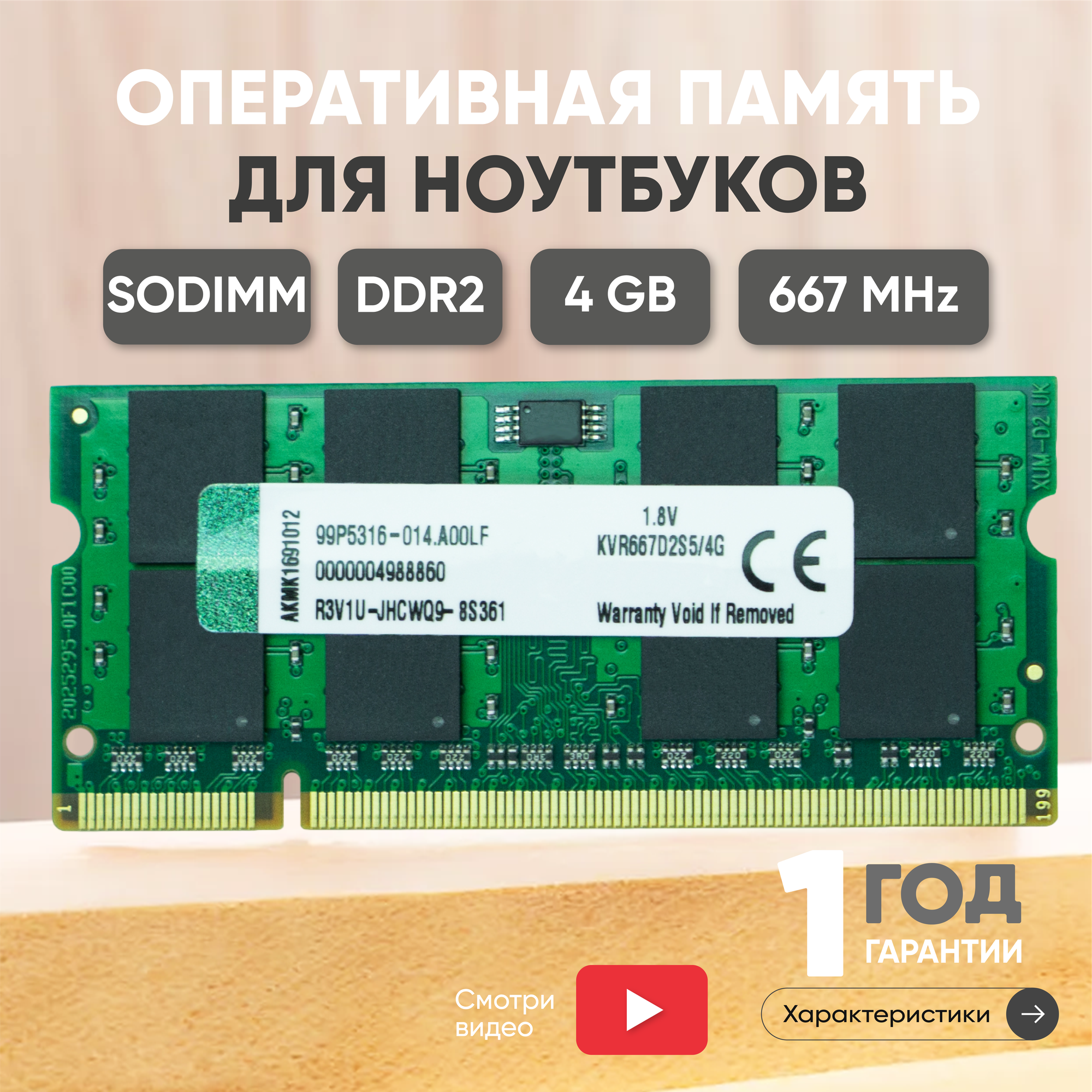 Модуль памяти Kingston Sodimm DDR2 4ГБ 667 MHz PC2-5300 84353 . интересное: