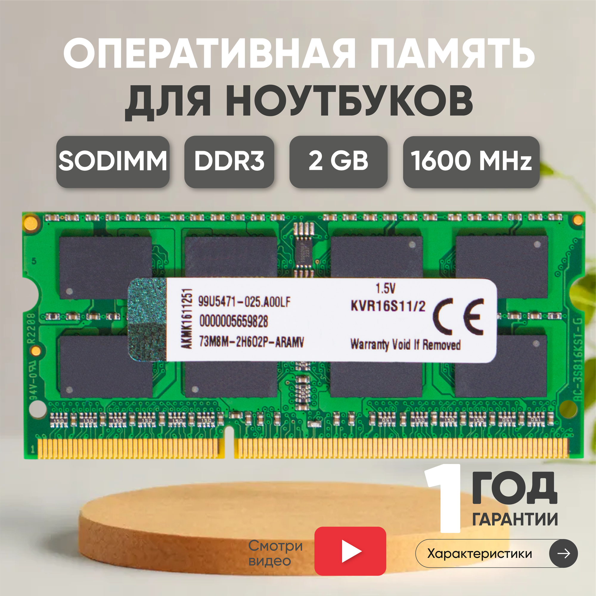 Модуль памяти Kingston Sodimm DDR3 2GB 1600 MHz PC3-12800 84356 . интересное: