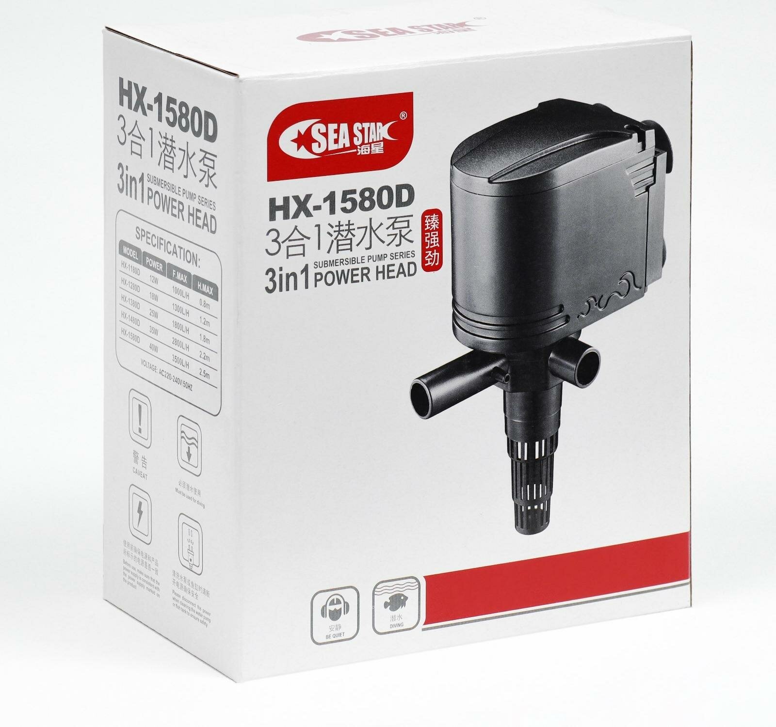 SEA STAR Помпа аквариумная Sea Star HX-1580D, 3500 л/ч, 40 Вт, высота подъема воды 2,5 м