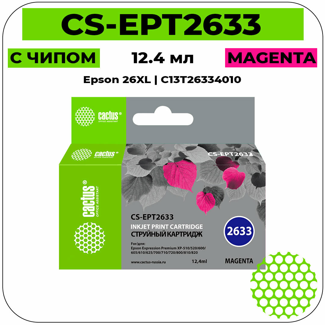 Купить Картридж струйный Cactus CS-EPT2633 пурпурный для Epson Expression Home XP-600/605/700/800 (11ml) CS .
