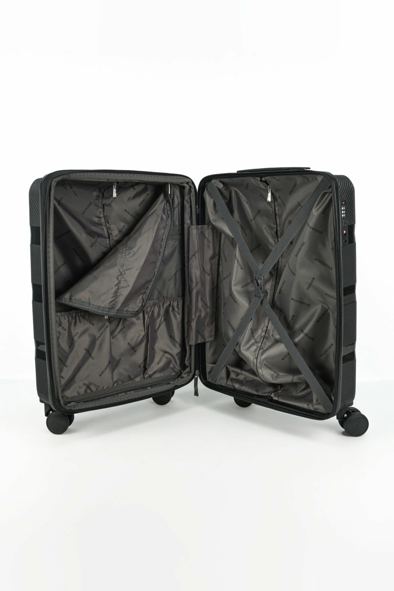Чемодан Sweetbags средний из полипропилена с расширением на 4-х колесах с TSA замком (3 гориз. полосы) черный M+