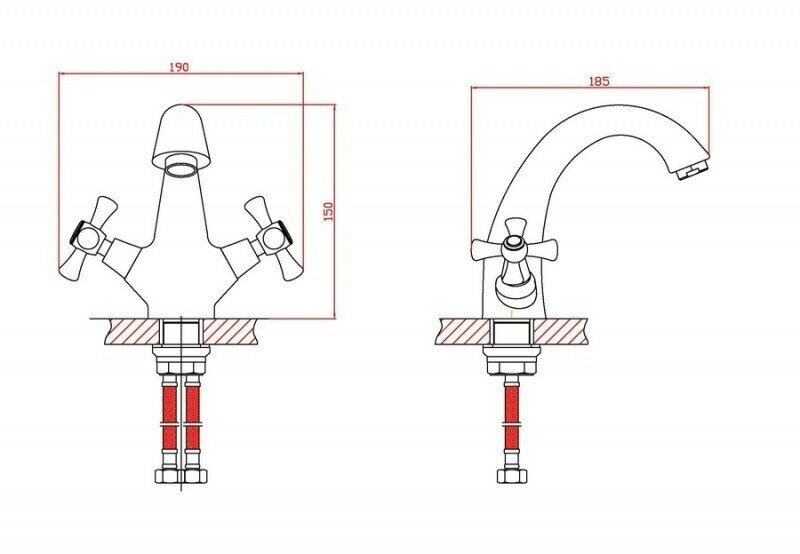 Смеситель для умывальника Zollen Rostock короткий излив, 1 шпилька RO53421011 448036 .
