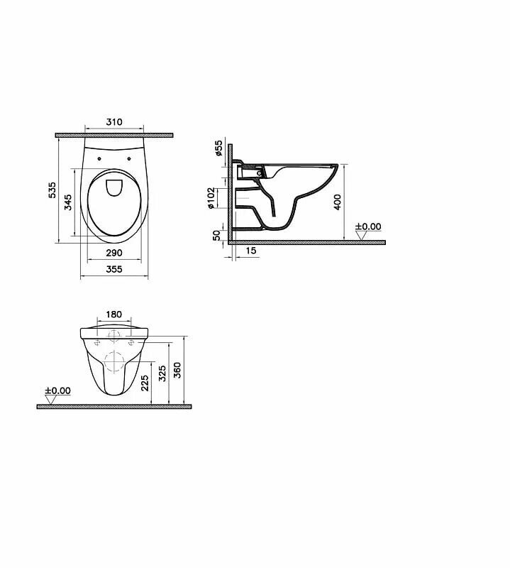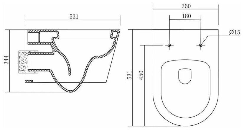 Чаша унитаза подвесная WELTWASSER Gelbach 004MT-GR с горизонтальным выпуском