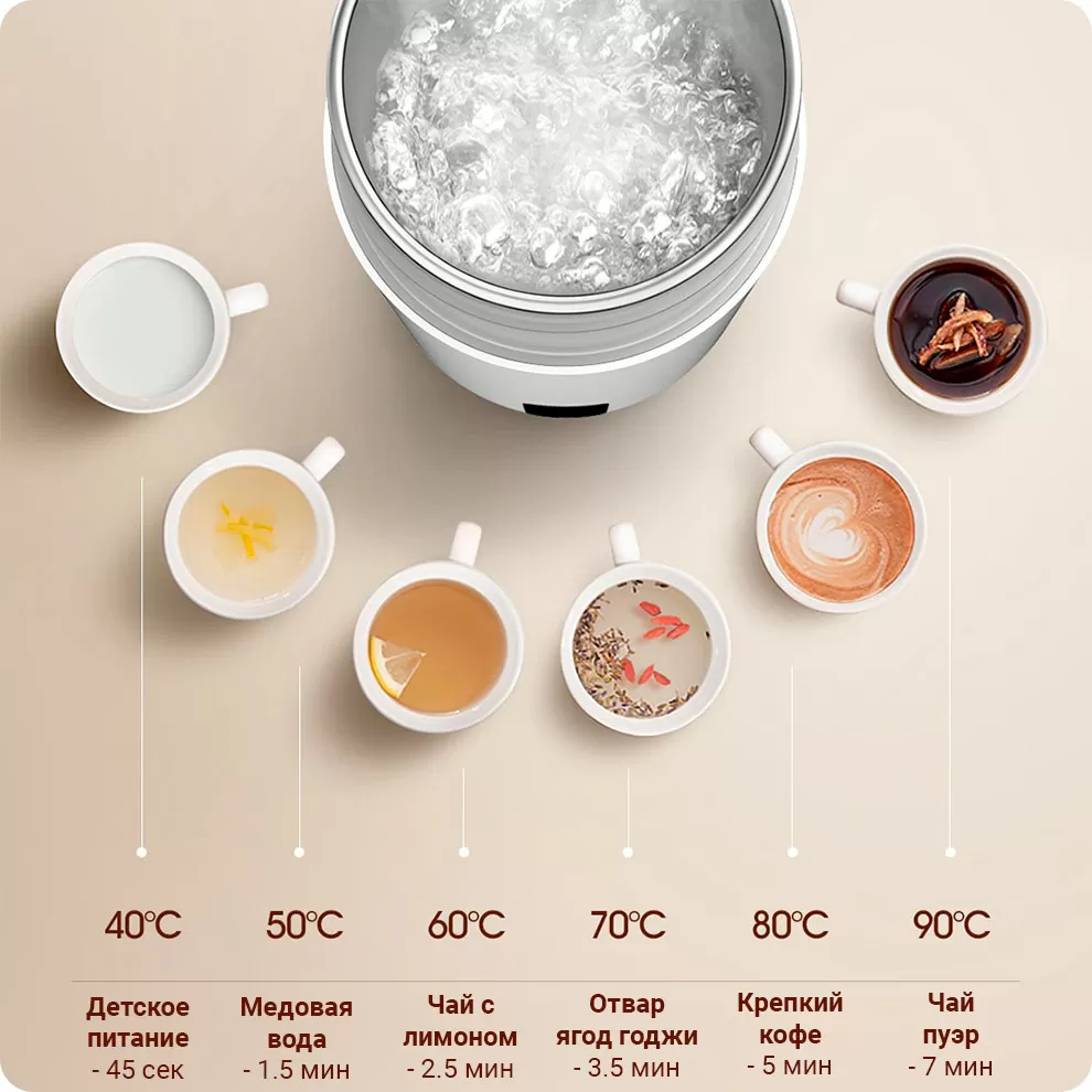 нет функций классического термоса (не держит температуру). подогрев только от сети. чтобы вскипятить 350 мл воды, нужно 6-8 минут. китайская вилка — нужно покупать переходник. неудобный шнур. на температуре 90 градусов и выше греется корпус. при нагреве сильно шумит. |