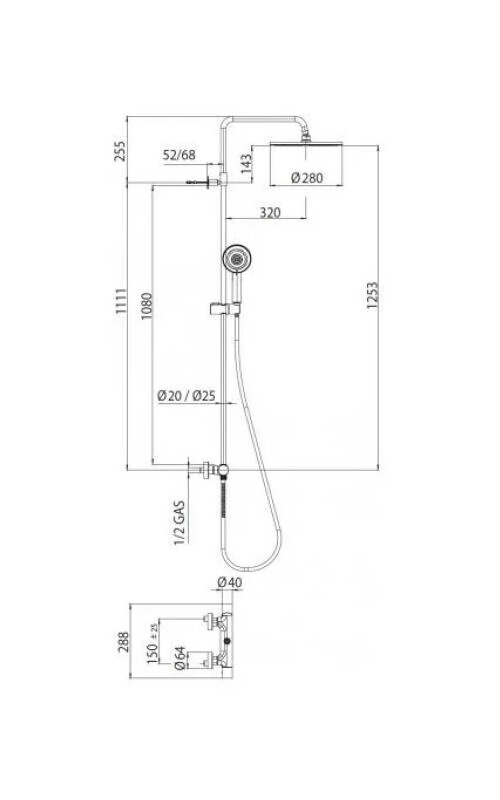 Купить Душевая стойка Bossini Elios, с однорычажным смесителем, верхний душ 250 мм, хром L10173.030