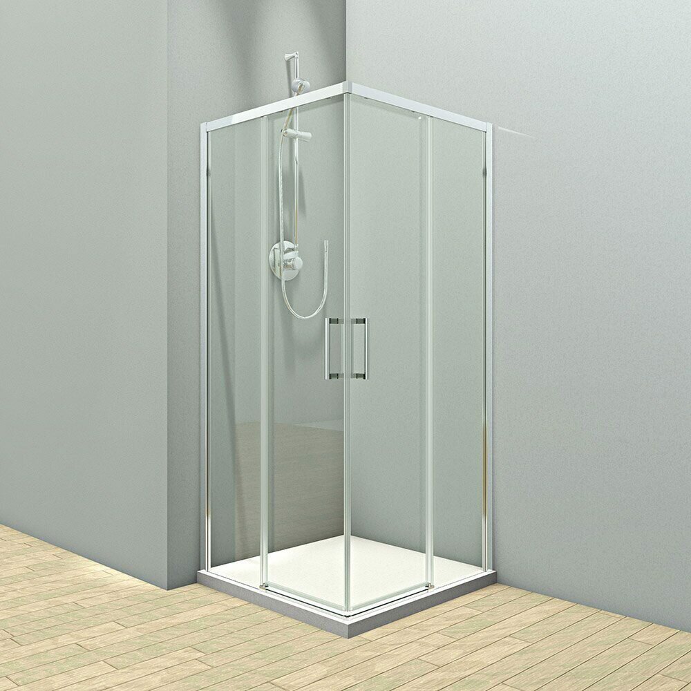 Душевой уголок Veconi Rovigo 90x90x195 см стекло прозрачное профиль хром механизм раздвижной (RV47-90-01-C4)