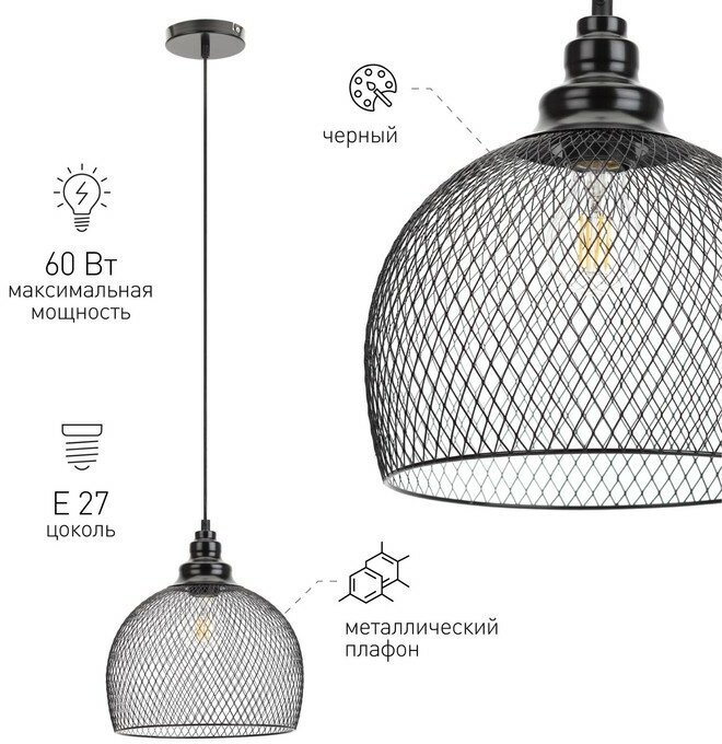 Подвес ЭРА PL7 BK 60W IP20 круг сетка черный