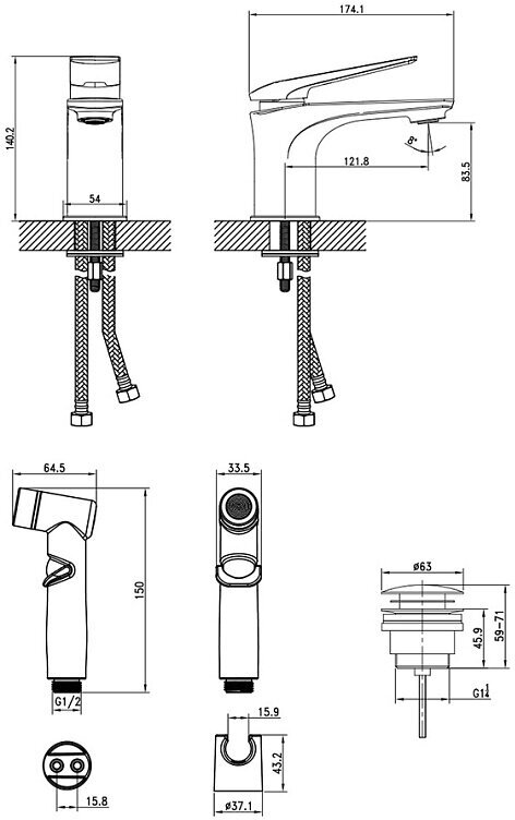 | Комплектация | Аэратор Neoperl® Slim SSR / Керамический картридж Sedal®35 мм / Аксессуары в комплекте: лейка гигиенического душа с регулятором напора воды / душевой шланг 1,5 м с функцией вращения лейки без перекручивания / настенное крепление для лейки Гибкая подводка 1/2" 60 см / Донный клапан Click/Clack 1 ?’ / хромированный / Присоединительная группа для настольного крепления / металлическая рукоятка |