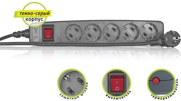 | Функции | заземление, выключатель на корпусе, световая индикация, шторки на розетке |