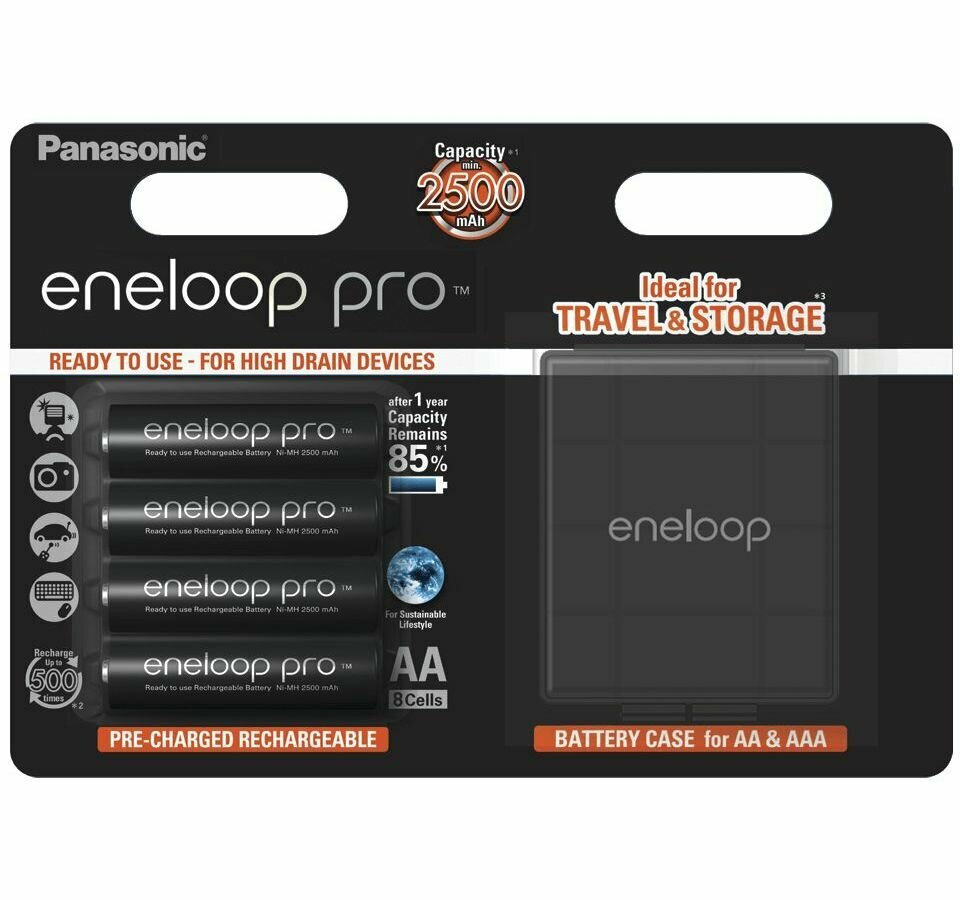 Аккумуляторы Panasonic Eneloop Pro AA 2500мАч BK-3HCDEC4BE 4шт + бокс для аккумуляторов