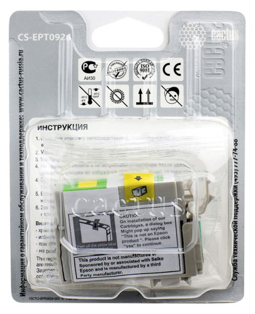 СохранитьКартридж Cactus CS-EPT0924, T0924, желтый / CS-EPT0924 интересное: