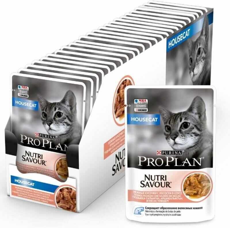 Корм для кошек PRO PLAN Housecat для домашних, с лососем в соусе пауч 85г (упаковка - 26 шт)
