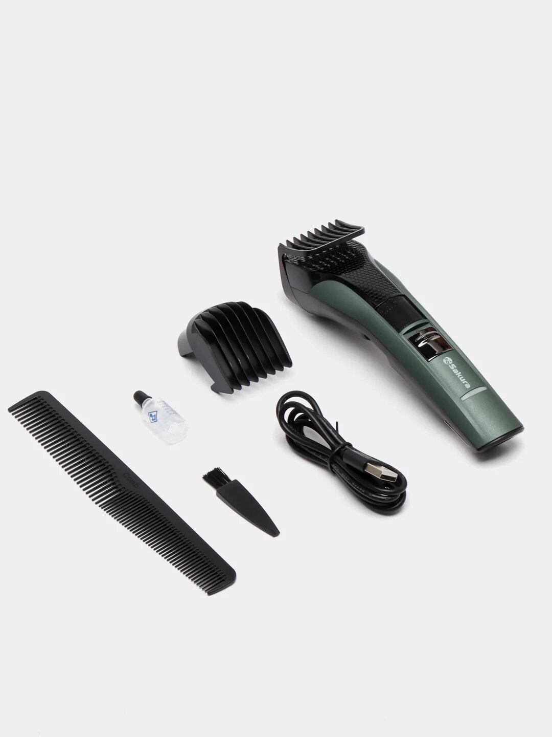 Машинка для стрижки Sakura - SA-5178BL, 4 насадки, зеленый, 1 комплект интересное: