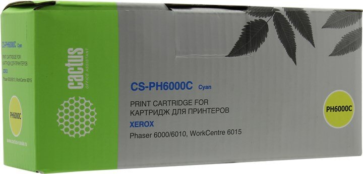 Картридж лазерный CACTUS (CS-PH6000C) для XEROX Phaser 6000/6010N, голубой, ресурс 1000 стр.