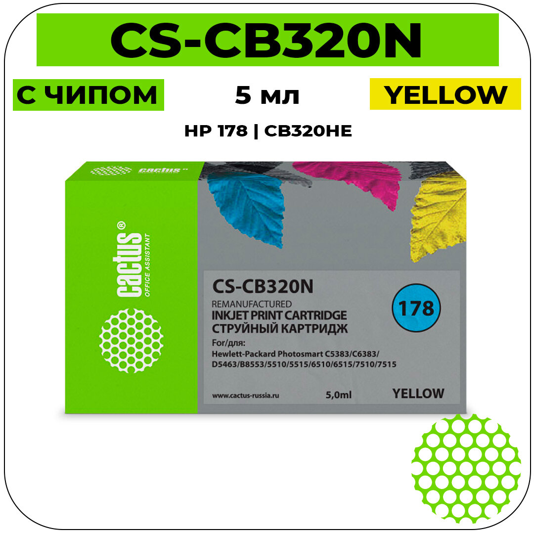 Картридж струйный Cactus CS-CB320N(CS-CB320) №178 желтый (5мл) для HP PS B8553/C5383/C6383/D5463/551