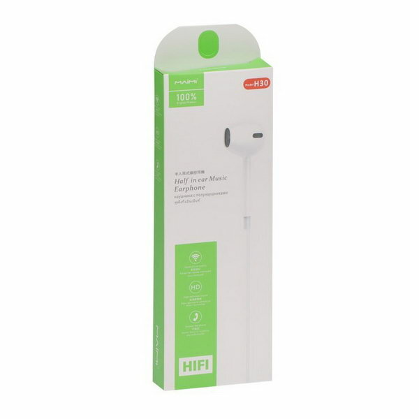 Наушники Maimi H30, проводные, вкладыши, микрофон, Jack 3.5, 1.2 м, белые