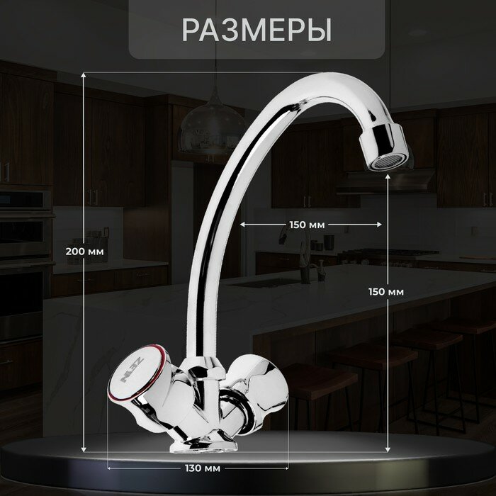 Смеситель для кухни ZEIN ZC2020, кран-букса латунь 1/2", без подводки, хром (1шт.) интересное: