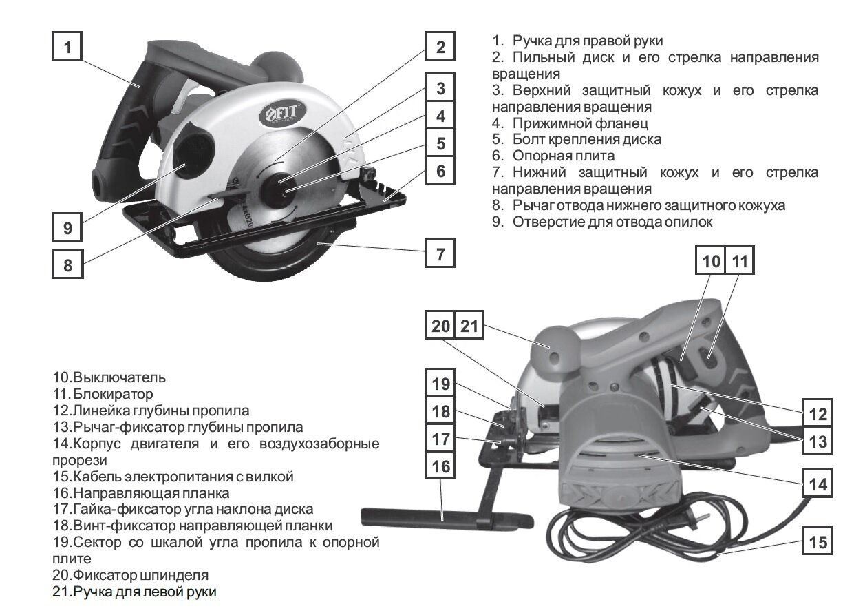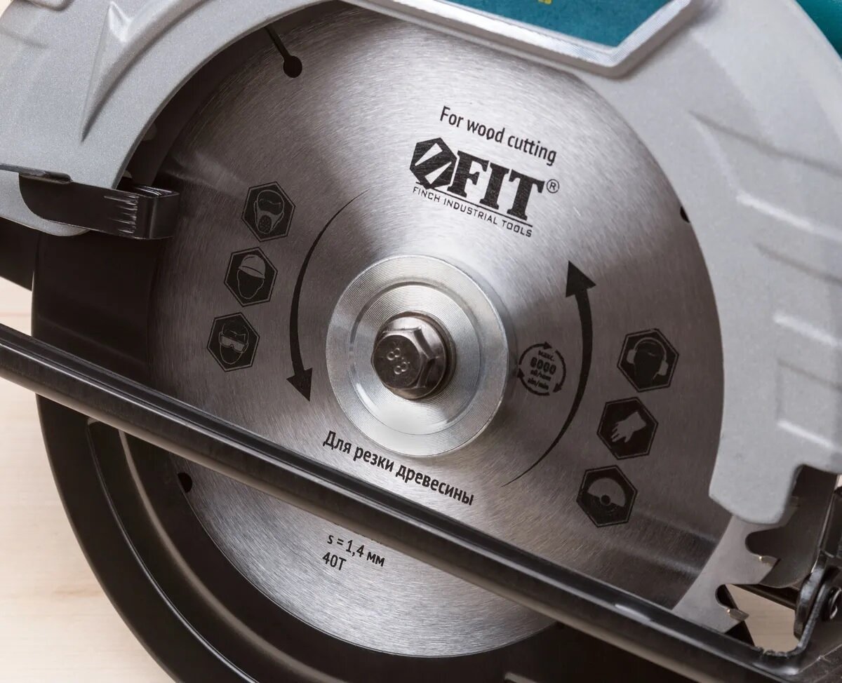 Купить Пила дисковая 1280 Вт; 5000 об/мин; 185/20 мм; жел. опора; рез. накл.; БС щеток; блок шпинд.; коробка FIT