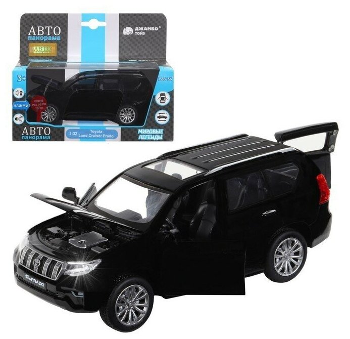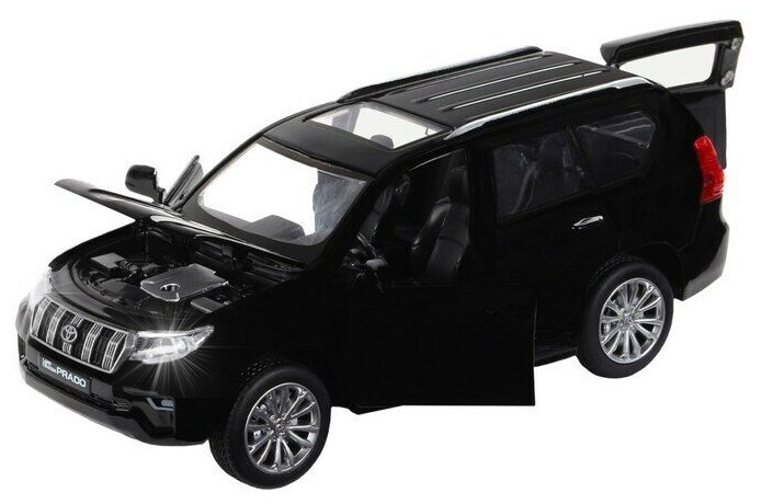 Машинка металлическая ТМ "Автопанорама", 1:32 Land Cruiser Prado, черный, инерция, свет, звук, открывающиеся двери