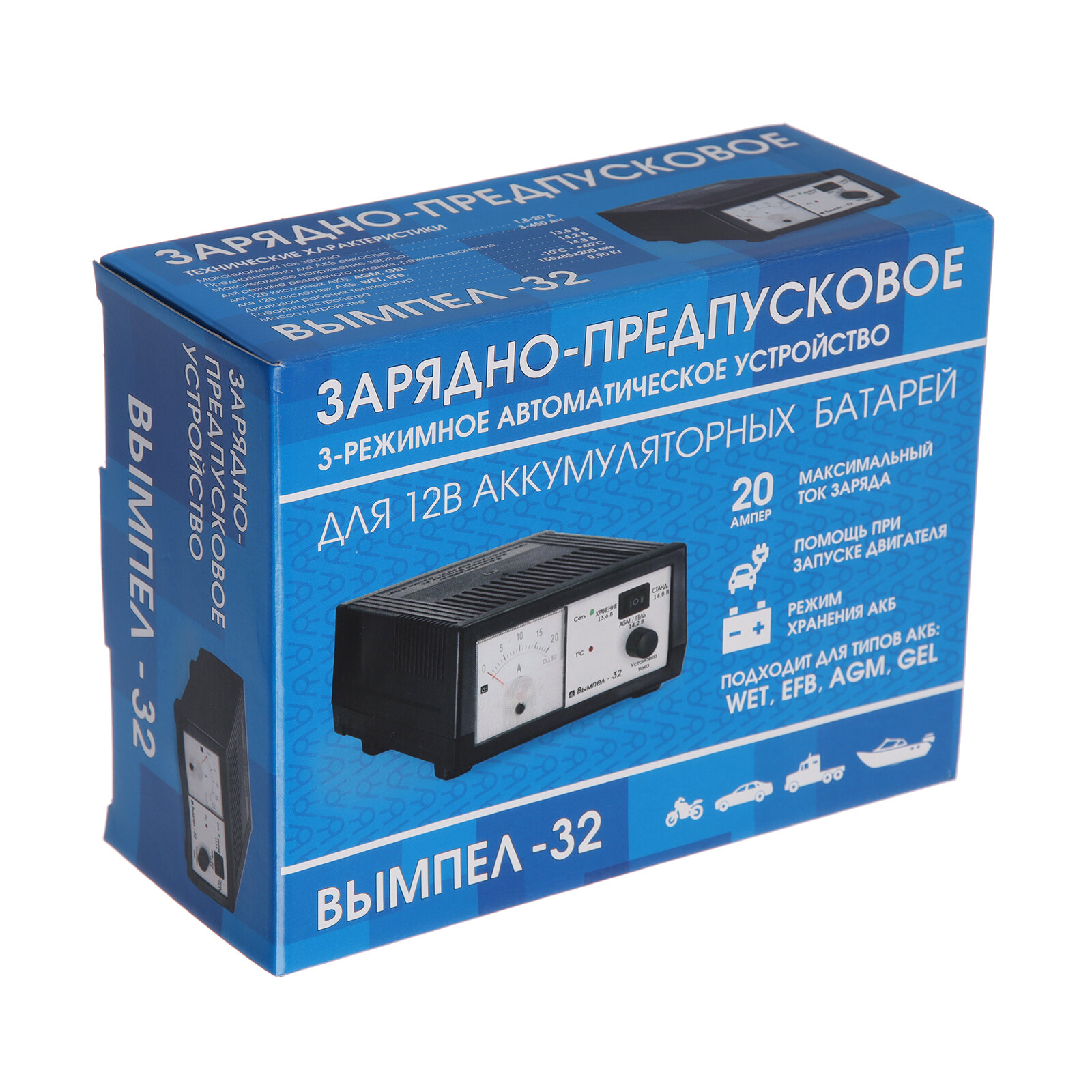 | Функции | встроенный амперметр / подходит для AGM/GEL аккумуляторов / предпусковая зарядка |