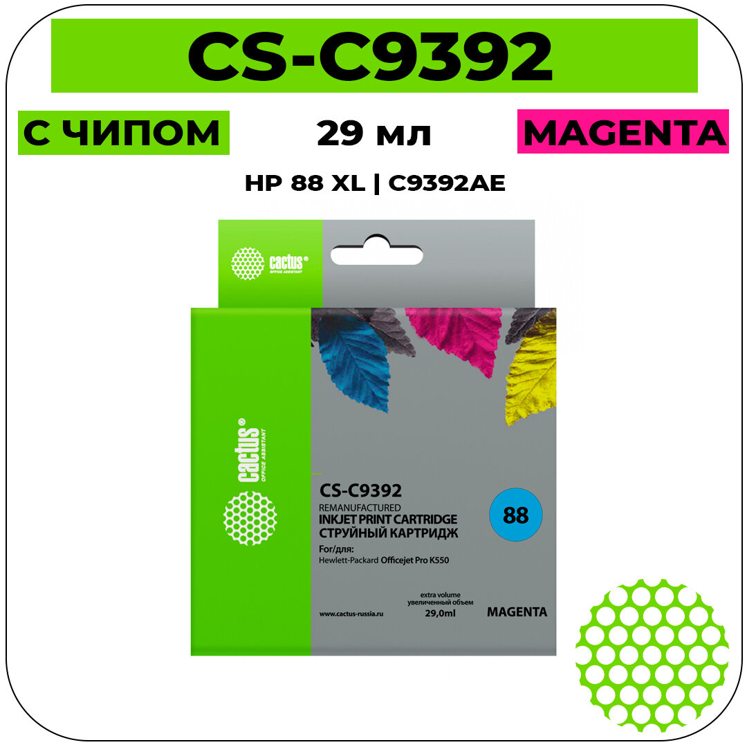 Картридж струйный Cactus CS-C9392 88 пурпурный (29мл) для HP DJ Pro K550 CS-C9392 .