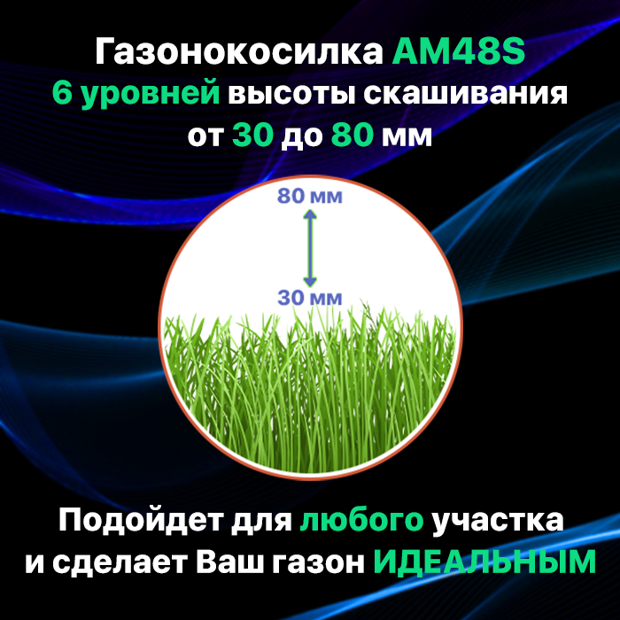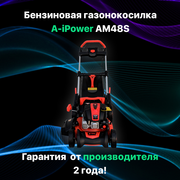 Газонокосилка бензиновая самоходная A-iPower AM48S (4,5 л. с, травосборник 70 л, ширина скашивания 48 см, высота 30-80 мм, 32 кг)
