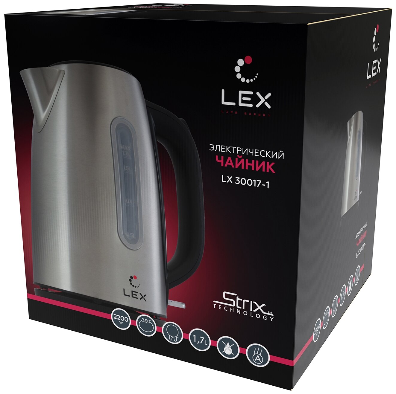 Электрический чайник LEX LX 30017-2 / объем 1,7 л / блокировка включения без воды / защита от перегрева /