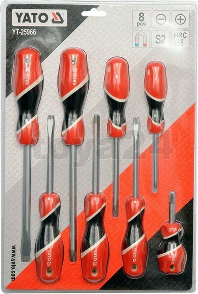 Набор отверток 8 пр: шлицевые - 5х100, 6х100, 8х150, крестовые - РН0х75, РН1х100, РН2х38, РН2х100, РН3х150 TOYA / YATO YT-25966
