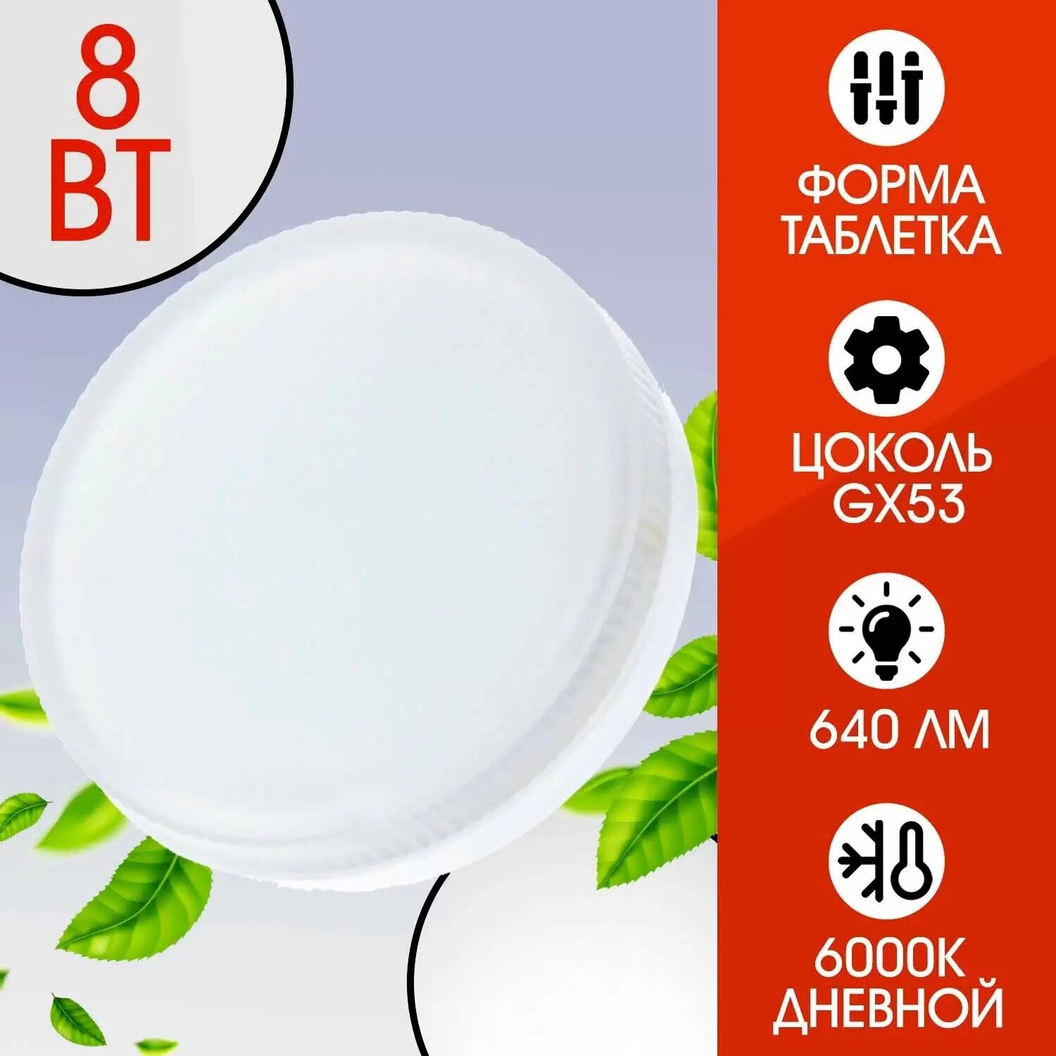 Светодиодная LED лампа SmartBuy GX53 св/д 8W(650lm) 6000K 6K 75x29 матов. стекло SBL-GX-8W-6K интересное: